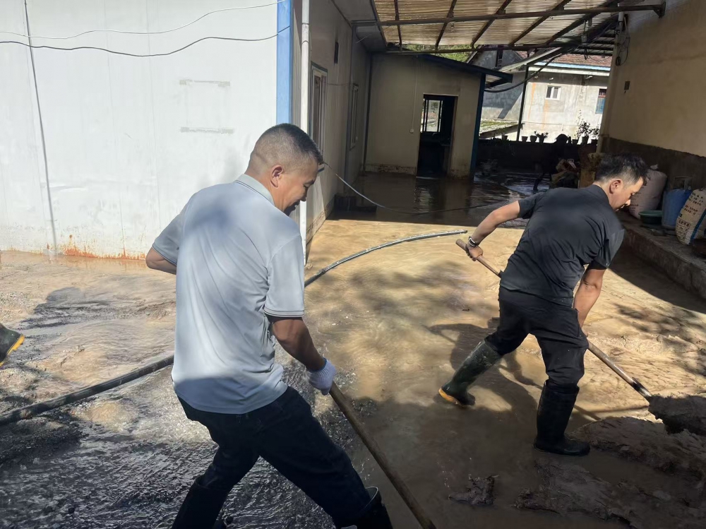 在組織自救的同時(shí),公司黨委心系周邊群眾,迅速組建“黨員志愿服務(wù)隊(duì)”,奔赴受災(zāi)農(nóng)戶家中開展幫扶。志愿者們幫助農(nóng)戶清理院落內(nèi)的積水和淤泥,并耐心安撫農(nóng)戶情緒,詳細(xì)了解他們的需求,用暖心服務(wù)為受災(zāi)群眾撐起“保護(hù)傘”。